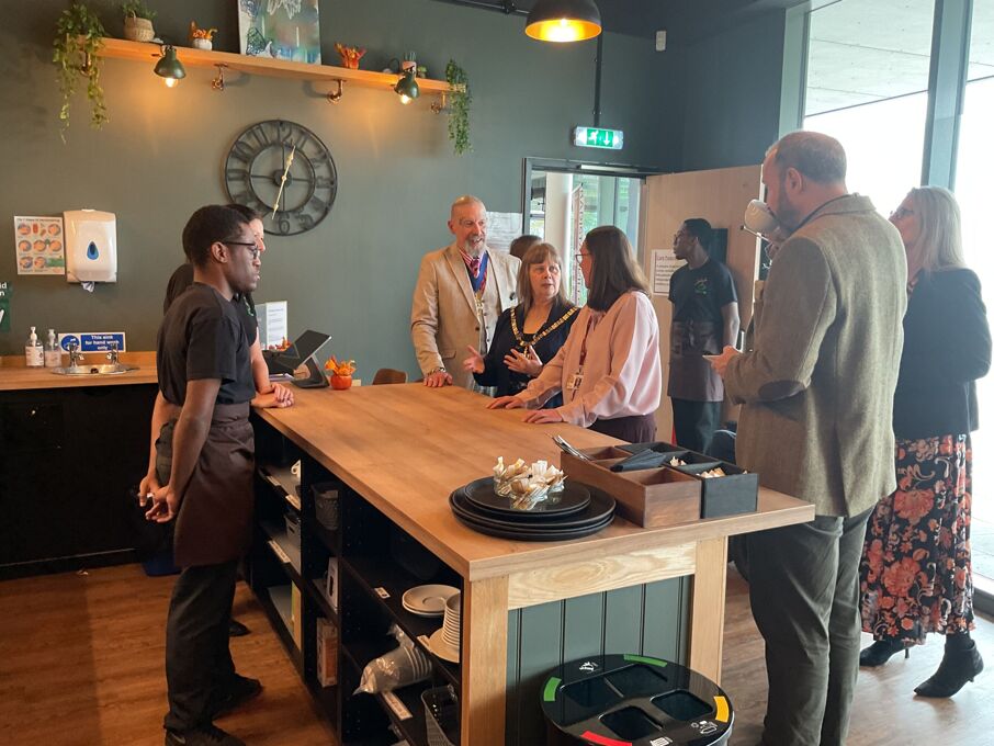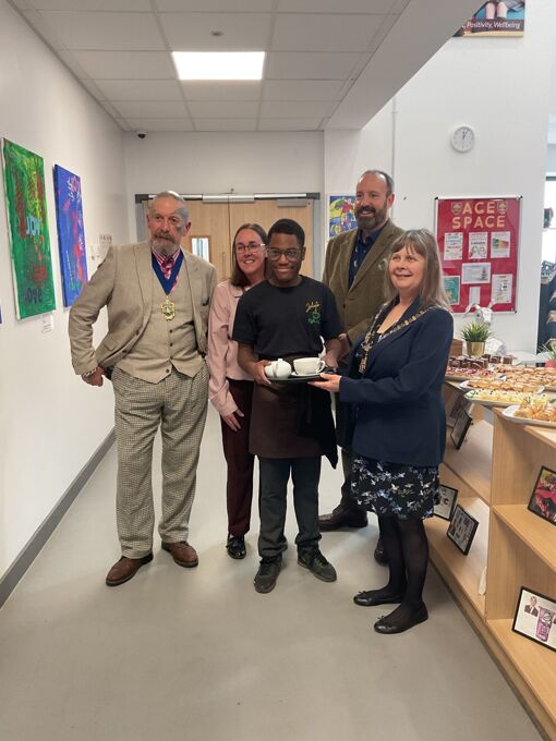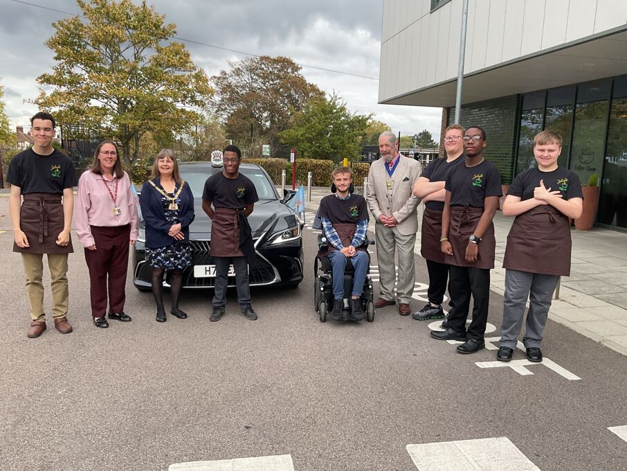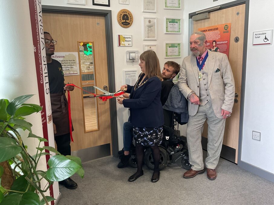 her consort to cut the ribbon and declare the coffee shop open. We were also joined at the opening by the new TKAT CEO Mr Hobby, TKAT Deputy CEO Mrs Harrison, TKAT Director of Learning for SEN Mrs Mackey and school governor for Post 16 and Careers, Mrs Petty.