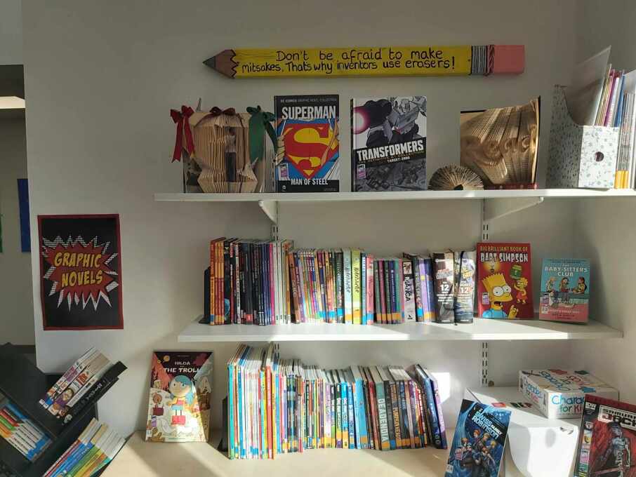 The library has a good selection of genres including student favorites such as Young Adult fiction, horror and graphic novels.